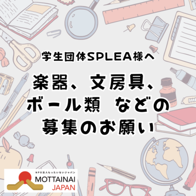学生団体SPLEA様へ楽器、文房具、ボール類 などの募集のお願い