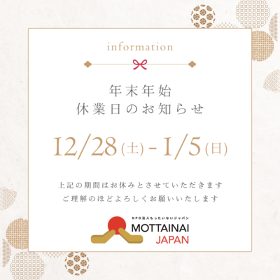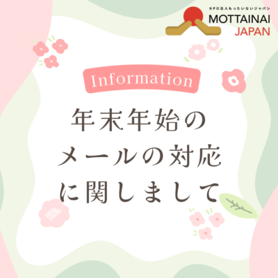 今年も残りわずかとなりました。 本年は大変お世話になりました。来年も何卒よろしくお願いいたします。 さて、現在もったいな…